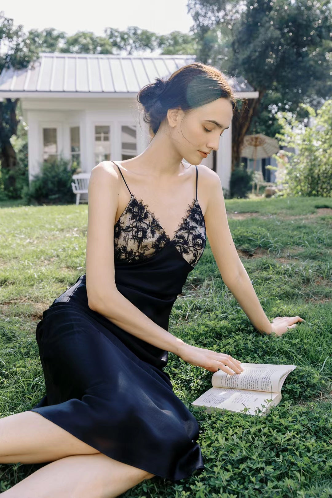 Black Silk Dress Lace Nightgown